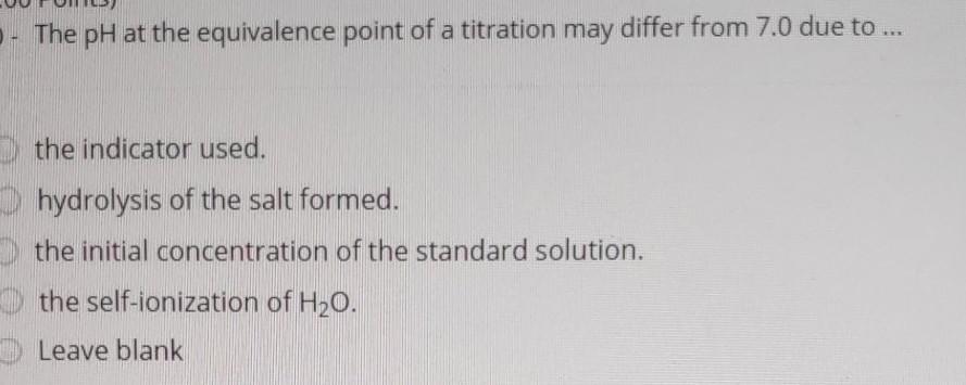 When does the equivalence point of a titration occur? For example, if the original volume of the analyte was 500 ml, divide by 1000 ml per l to obtain 0.5 l. May 22, 2018 · divide the number of moles of analyte present by the original volume of the analyte. Divide 0.01 moles of analyte by 0.5 l to obtain 0.02 moles per liter. In both half reactions one electron is exchanged, so equivalence point potential is given by How to calculate potential at the equivalence point? This problem has been solved! This is a straight application of the formula derived above. An actual titration curve generated in lab is shown below, with some imporant points labeled answer the questions that follow. When does the ph increase at the equivalence point? Ha initial volume acid analyte solution: Nov 26, 2019 · if you know that titrating 50.00 ml of an hcl solution requires 25.00 ml of 1.00 m naoh, you can calculate the concentration of hydrochloric acid, hcl. Based on the molar ratio between hcl and naoh, you know that at the equivalence point :